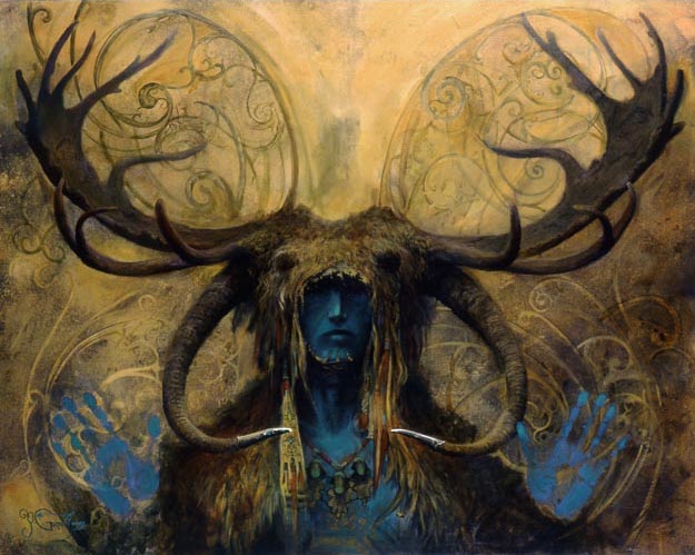 Yesterday we met some of the Gods associated with Samhain, death and the Underworld. The Charge of the God written above speaks to the many faces the God wears and the weavings of all mysteries within them. Another God that may be invoked at Samhain as the final harvest is undertaken is the Horned God. You will most often see this God celebrated at Lughnnasaad or the Autumnal Equinox of Mabon; the first and second harvest respectively. But inherent in the aspects of the Horned God are those qualities much like that of guardians of the human ancestors. The Horned God protects the wild creatures and when sacrifice at the hunter’s bow is made, tends to the needs of the creature that is so deeply embedded as one and the same as the God. Including our animal companions in the celebration of death and life is woven seamlessly into the invoking of the Horned God and the role he plays in the cycles of life and death in the wild.
