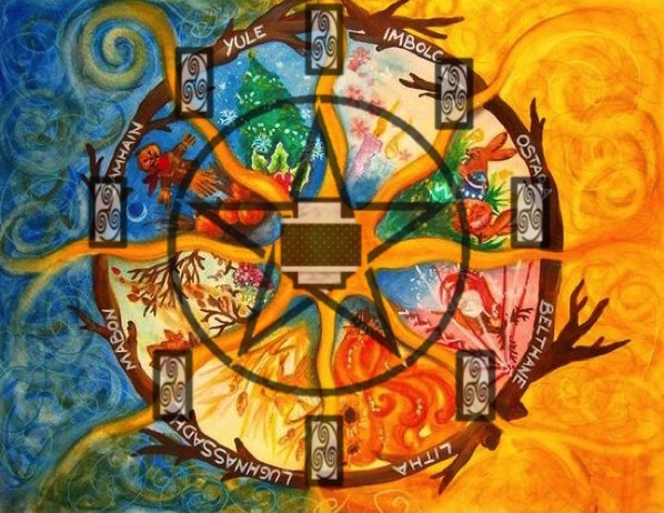 This spread uses 10 cards- 8 for each of the Sabbats and one for you standing in the Light of your self and another as the polarized opposite of you as Shadow. These two cards indicate the strength and power you wield in both parts of your nature as light and shadow and can be used to infuse in whatever dynamic and dose you choose as the energy of the cards relating to each of the Sabbats is revealed. Read more and find the spread here: